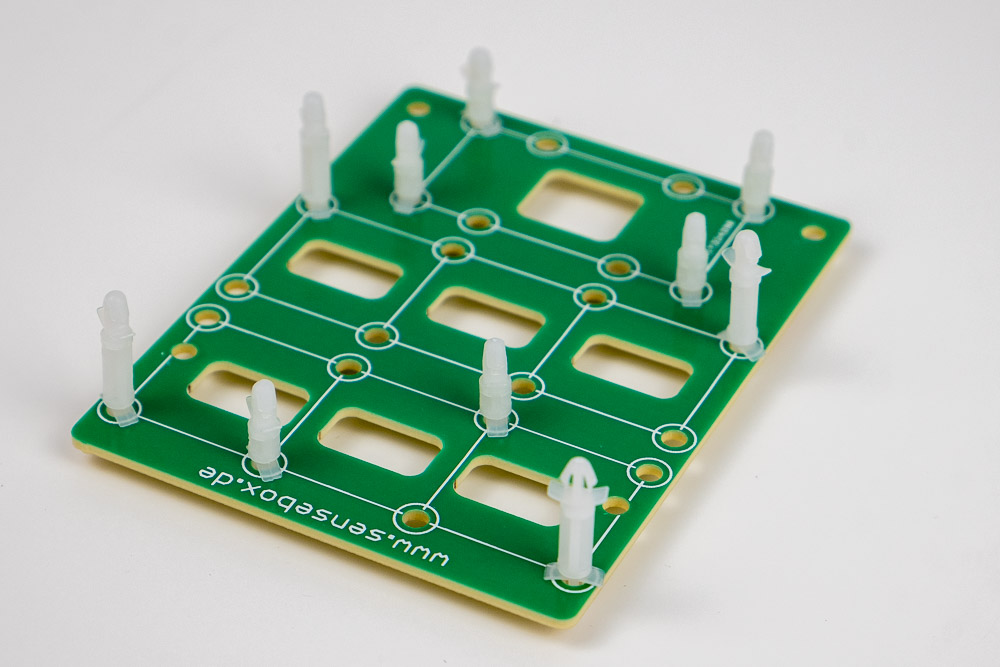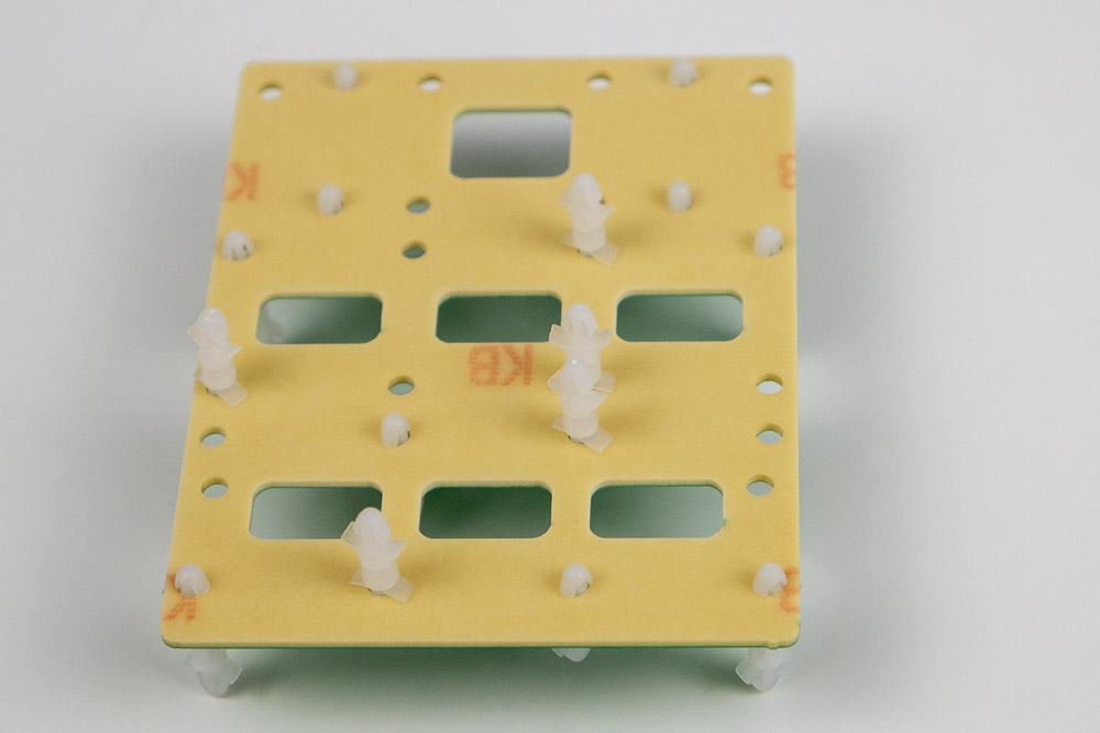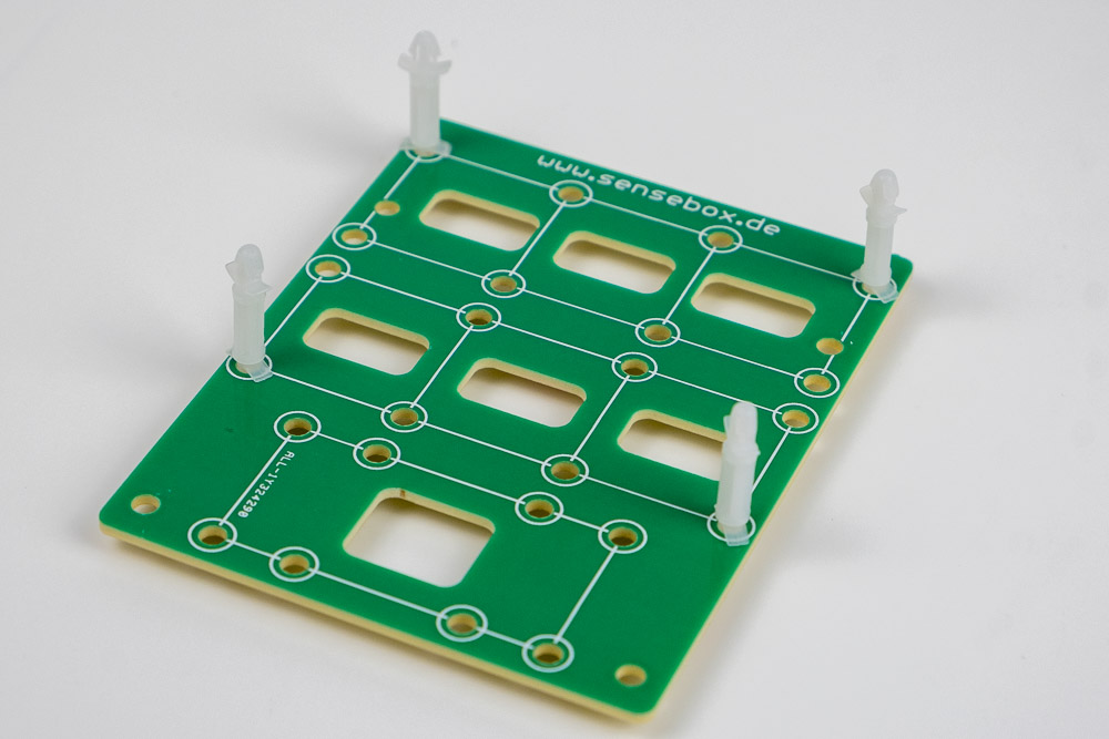 Nun 5 kurze Abstandshalter auf der Unterseite anbringen: