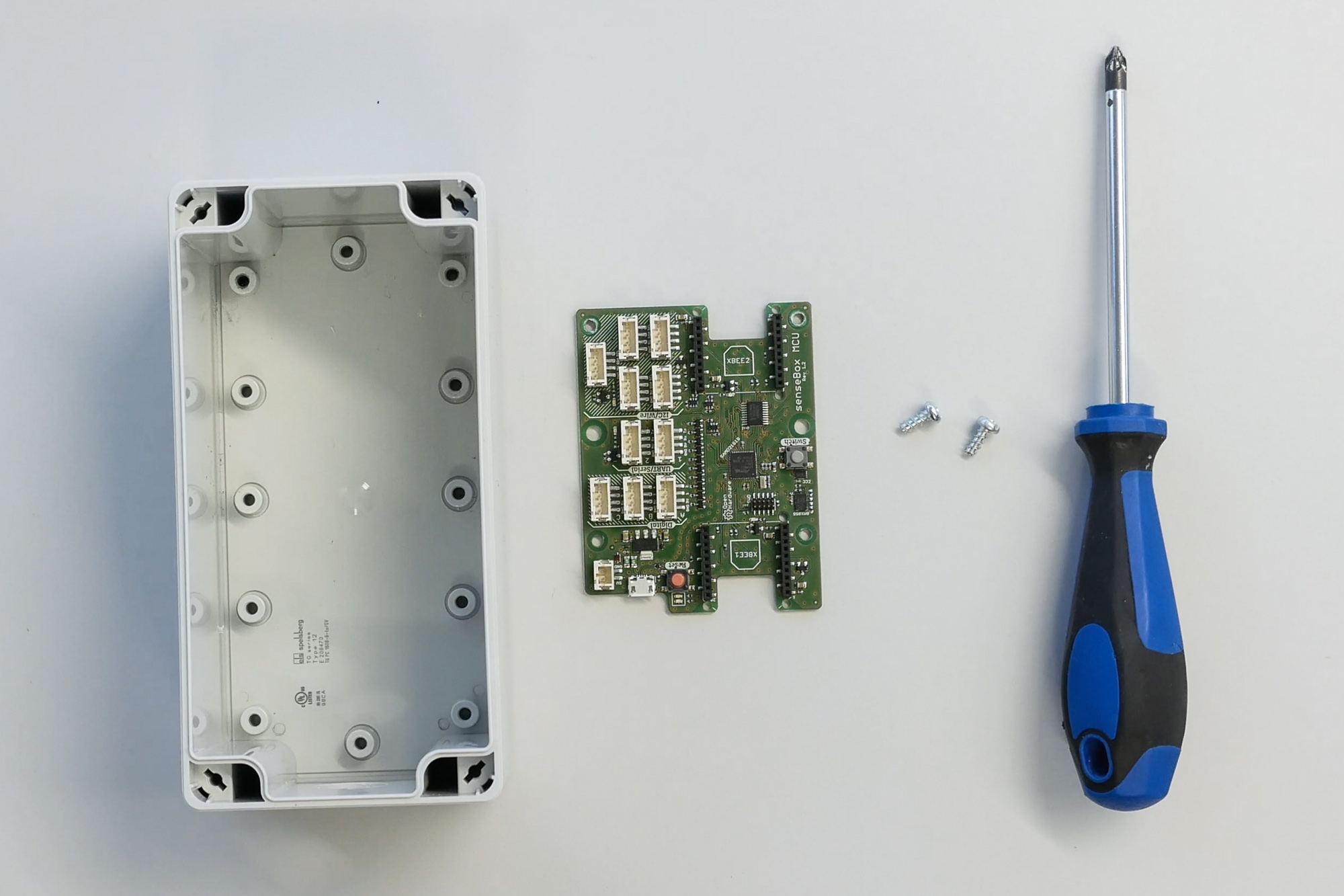 senseBoxen die seit Dezember 2020 gekauft wurden, sind mit einem neuen Gehäuse ausgestattet. Hierbei unterscheidet sich der Zusammenbau nur in den ersten Schritten leicht von der alten Variante. Zuerst verschaffen wir uns einen Überblick über die verfügbaren Bauteile.