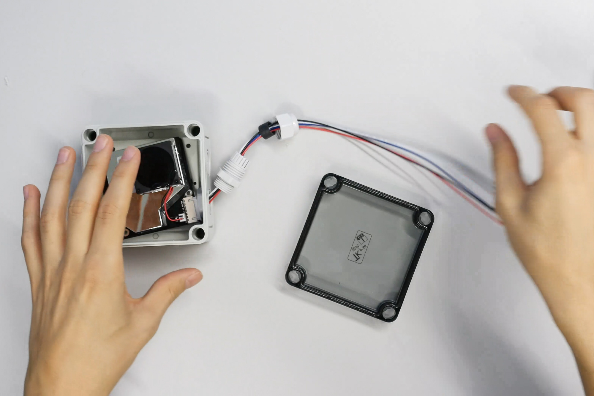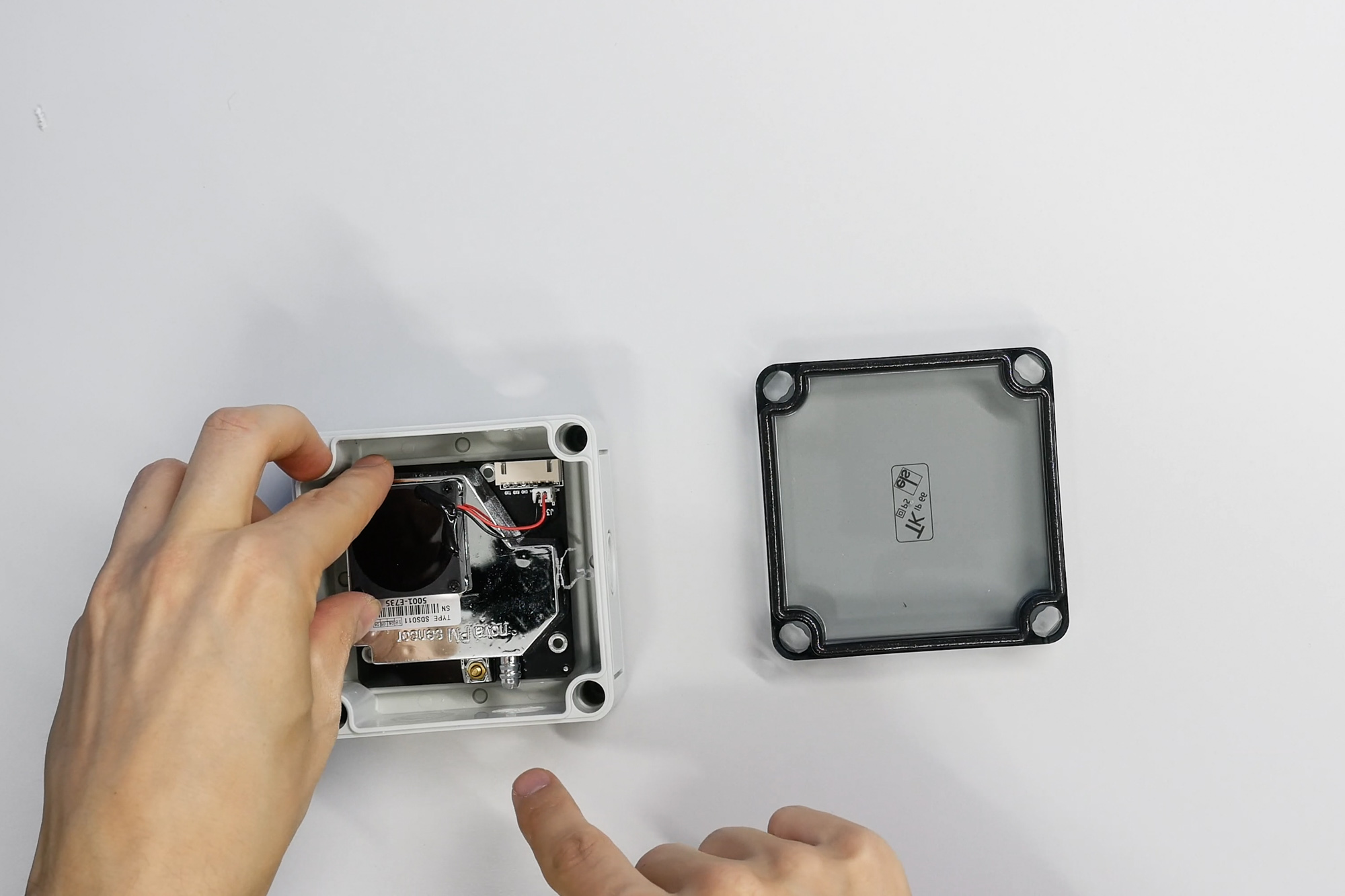 Als letztes wird der Deckel mit den Schrauben versehen und ein Silikagelbeutel zum weiteren Schutz vor entstehende Feuchtigkeit in das Gehäuse gelegt.