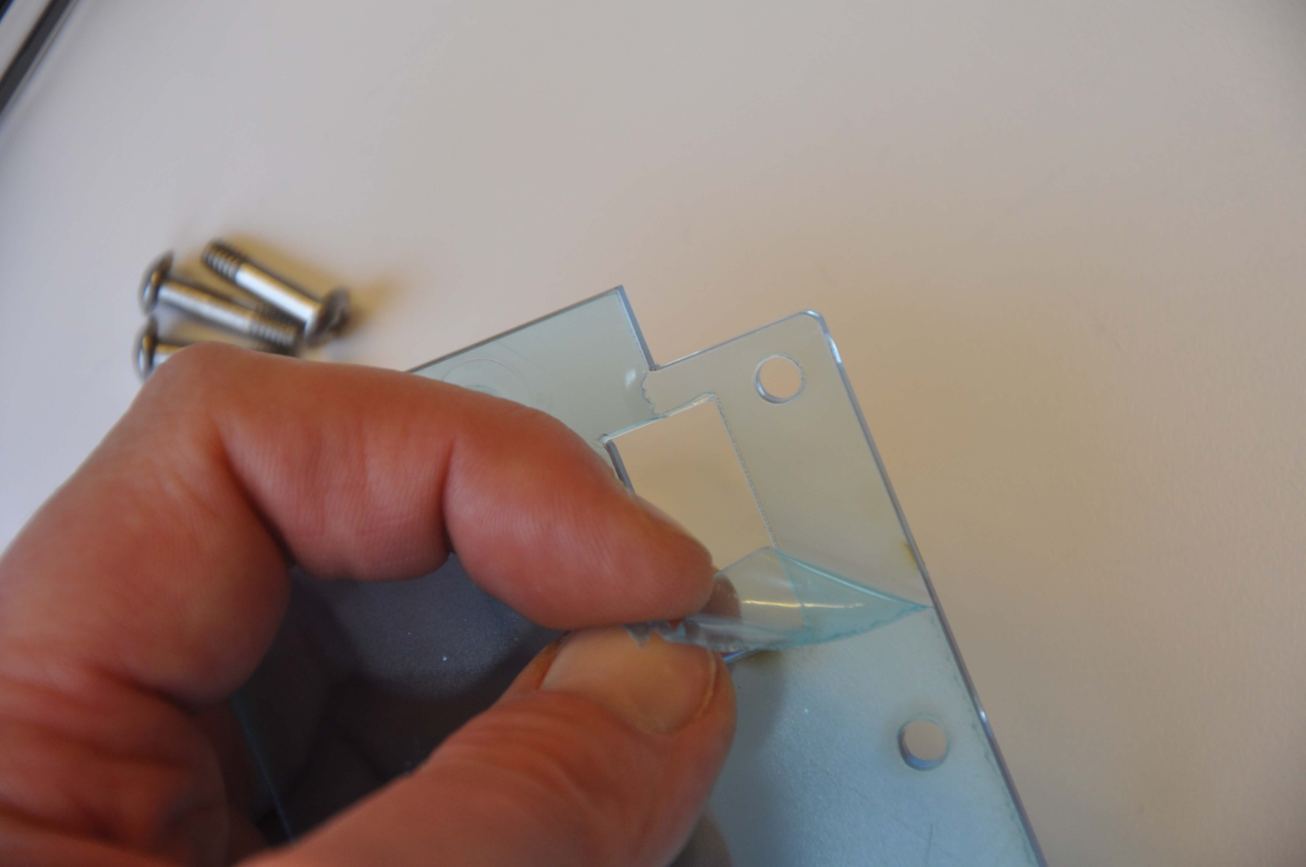 Von der Acrylplatte kann nun die Folie entfernt werden.